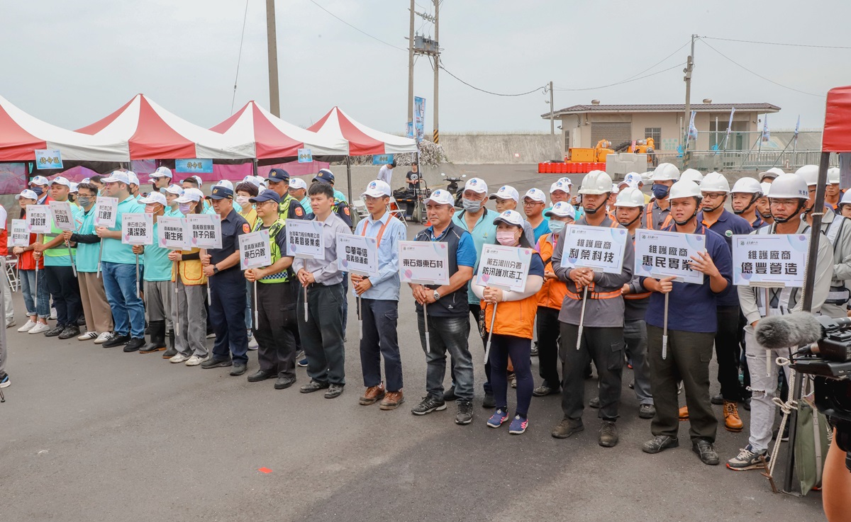 參與有縣府水利處、東石鄉公所、第五河川分署、衛生所、朴子分局、消防局東石分隊、台電、中華電信、自來水及社區隊伍。(記者蘇榮泉攝)