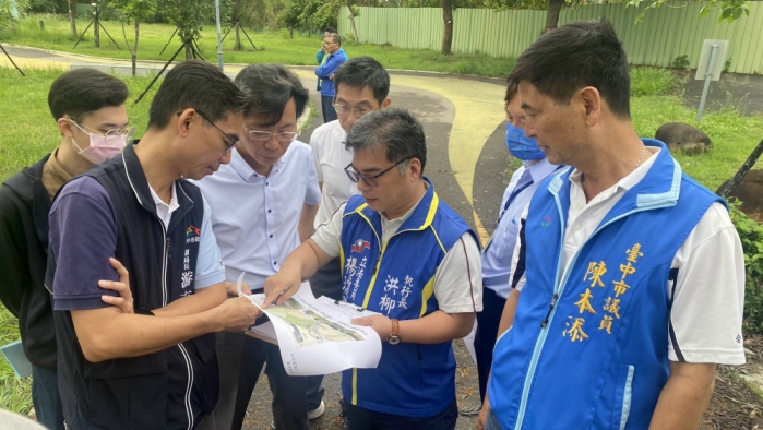 施文芳說明,停車場西側土地目前為鄰近工程土方暫置區,無法立即釋出,須待完工移除土方才能施作,依照期程推估,預計2026年才能增設二面紅土網球場,經費願與台中市運動局一同籌措。