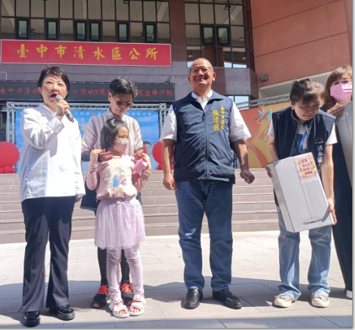 台中市長盧秀燕特別前來,與張清照議長、民政局吳世瑋局長等人一起啟動九萬人破關儀式,並致贈89998-90002等新生人口禮品,清水區第9萬名設籍者可獲價值近6,000元的無線吸塵器,而前後2名設籍民眾可獲贈價值近2000元禮品。