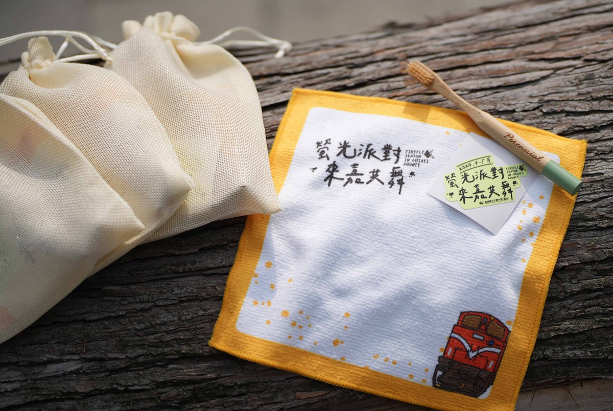 週四親子入住指定合法旅宿,12歲以下孩童可獲得親子賞螢包一份,包含旅行收納袋、兒童牙刷及賞螢季限定螢光貼紙,數量有限送完為止。(記者蘇榮泉攝)
