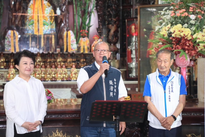 清水紫雲巖捐千萬助花蓮賑災儀式,市長盧秀燕、台中市議會議長張清照、前議長張清堂、民政局長吳世瑋、清水區長蔡慶生、清水警分局長蔡慶星、清水紫雲巖主委吳勝隆及所有委員均到場。