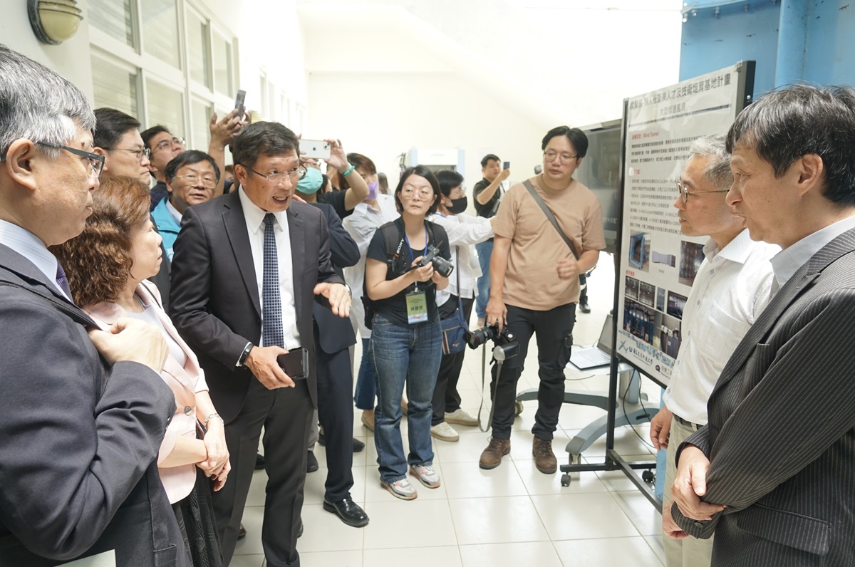 教育部政務次長劉孟奇、技術與職教司司長楊玉惠、雷虎科技董事長陳冠如、校長張信良、副縣長劉培東等產官學界見證這非凡時刻。(圖/記者蘇榮泉攝)