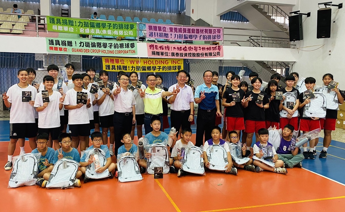 【記者蘇榮泉雲林報導】雲林縣位於偏鄉,偏遠地區的學校通常面臨著設備老舊、資源匱乏等問題,尤其是體育設施與器材的缺乏,限制了學生的運動發展。在這樣的情況下,縣議員蔡岳儒與朋友討論後,透過北港高中校友的介紹,成功引薦宏盛皮具(東莞)有限公司、東莞威保運動器材有限公司、WW HOLDING INC、GUANG DER CROUP HOLDING CORPORATION、廣泰投資控股公司等企業共同捐贈護具、水壺及背包給北辰國小、建國國中及北港高中的排球小將們,這已經是他們第四次的捐贈。