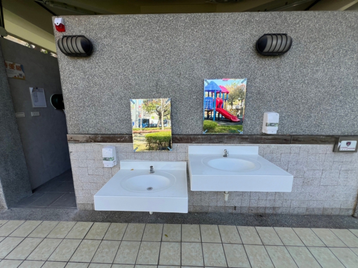 市府環保局表示,市府修繕的84座老舊公廁中,有48座公廁分別坐落於10處公園內,除更新設備、加裝扶手等友善設施,讓公園公廁明亮又通風外,考量公園使用族群及年齡層特性,其中8處公園設置親子廁間,讓親子可同時如廁,安心又方便。