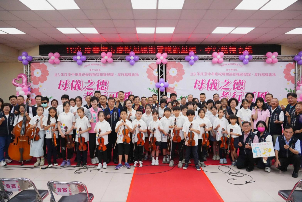 北區公所113年度慶祝母親節暨模範母親、孝行楷模表揚活動,在台中教育大學附設實驗國民小學弦樂團悠揚樂聲中揭開序幕,現場氣氛溫馨歡樂,包含立法委員黃健豪、市議員陳政顯、陳文政、陳俞融、民政局長吳世瑋、北區區長陳宗祈、錦平里長兼北區里長聯誼會長游金隆及在地各里長均到場共襄盛舉。