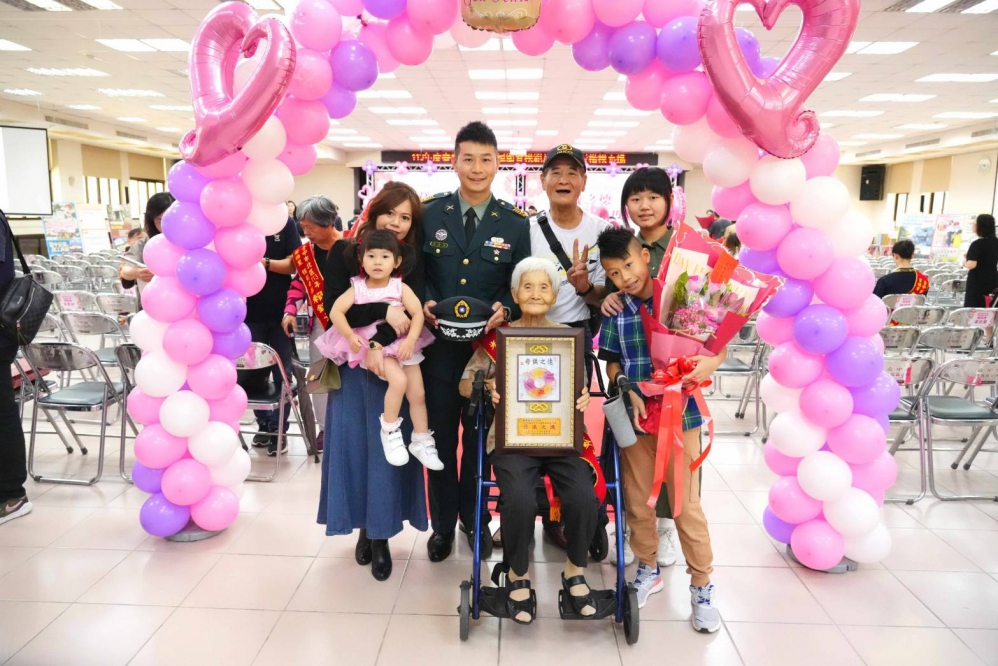 91歲來自光大里的黃陳英姿女士,她的孫子黃偉豪目前在陸軍航空特戰指揮部擔任一等士官長,今日會中也特別代表所有模範母親家屬上台宣讀感言,向在場的模範母親致敬。他說,他是在隔代教養中長大的孩子,雖然沒有緣分感受母親的慈愛,但在阿嬤的呵護下,從未感受自己與他人有所不同,阿嬤對他而言就像母親一般;他並指出,阿嬤未受過教育,不善言辭,但她始終保持著堅韌和樂觀的態度,引導他走上正確的人生道路,這也是他今日成為特種部隊的重要原因。