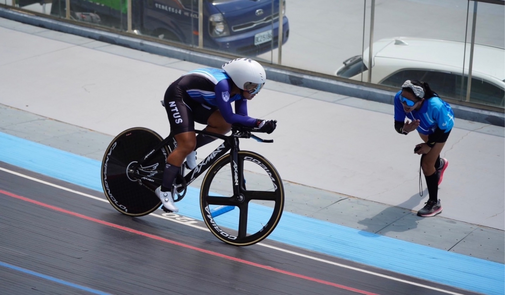 【記者林獻元台中報導】113年全國大專校院運動會在台中市立自由車場完成場地賽事,台中地主隊台體大展現絕佳實力,單日勇奪7金,迄今累計13金亮眼成績,台中好手張誌盛更在個人追逐賽締造三連霸佳績。台中市運動局長李昱叡表示,台中市長盧秀燕近年致力發展自由車運動,挹注資源支持培訓,李局長也感謝台中自由車隊全體選手及教練團結一心,同時鼓勵選手在明日公路個人賽再創歷史佳績。