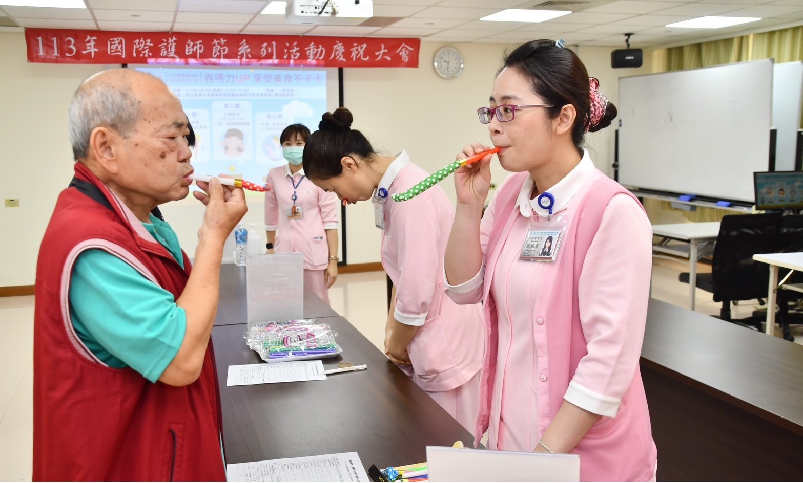 護理部主任余春娣表示,今年的國際護師節系列活動以三大主題為核心,分別是「愛的傳承」慶祝大會、「吞嚥力UP 享受美食不卡卡」闖關活動,以及「智慧護理學術研討會」。透過這些活動,不僅感謝護理師們的辛勞,還感謝他們家人的支持。此外,今年的活動還表揚年度優良護理人員和優良臨床教師。為了讓護理師更方便地進行臨床衛教,醫院引進了衛教機器人,並舉辦了創意命名活動,讓護理師感受到了肯定和鼓勵。