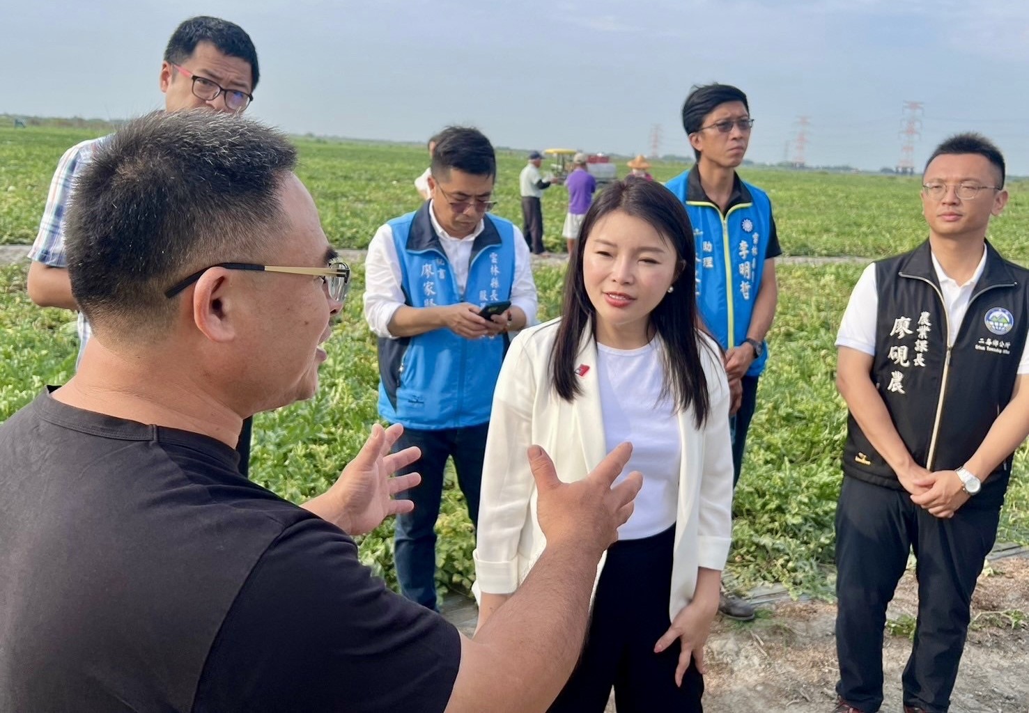 【記者蘇峰毅雲林報導】雲林近期氣候多變,正值西瓜採收期,不少西瓜田傳出農損災情。立法委員張嘉郡近期接獲不少農民陳情,由於連日雨水浸泡,導致西瓜出現裂果等損害,她今(7)日邀集農糧署與雲林縣政府前往會勘,全力替農民爭取權益,當場要求農糧署儘速啟動天然災害救助程序,盡快認定農損事宜,減少農民的損失。