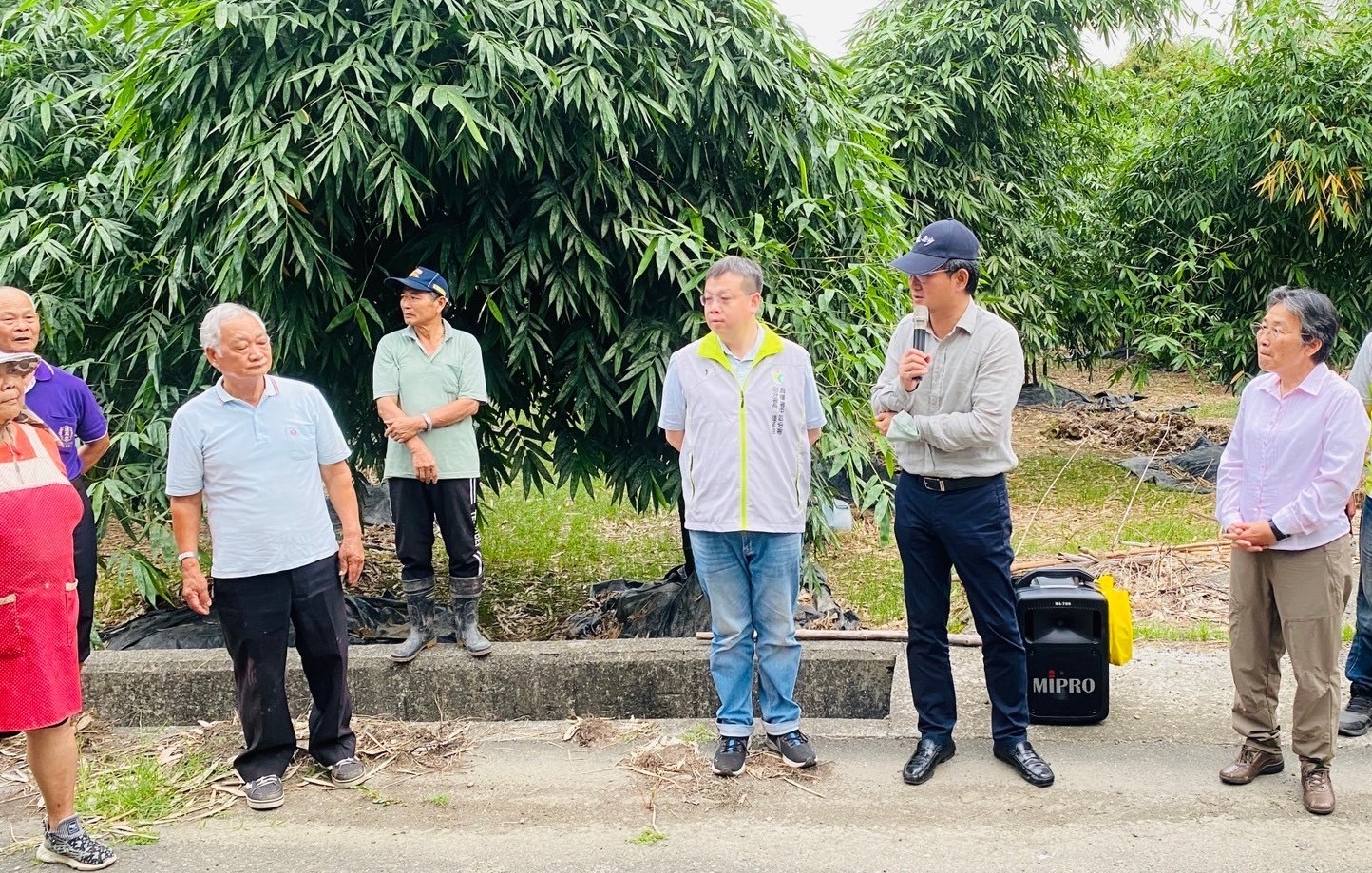 立法委員劉建國接到農民陳情後,馬上邀請農糧署等相關單位一同來到雲林縣二崙鄉、古坑鄉會勘災損情形。