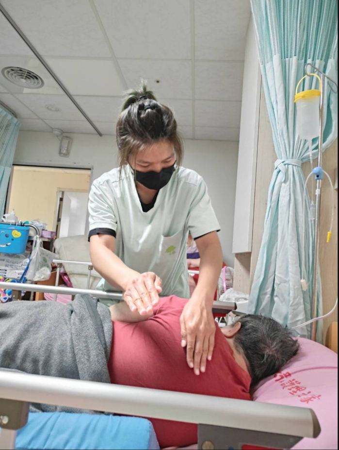 父親過世後,為了彌補心中的遺憾,她化悲傷為動力,立刻報名線東大眾護理之家辦理的自訓自用計畫,訓後直接於原職場繼續服務,而能夠照顧有需要的長者,也減輕了她心中對父親的思念。