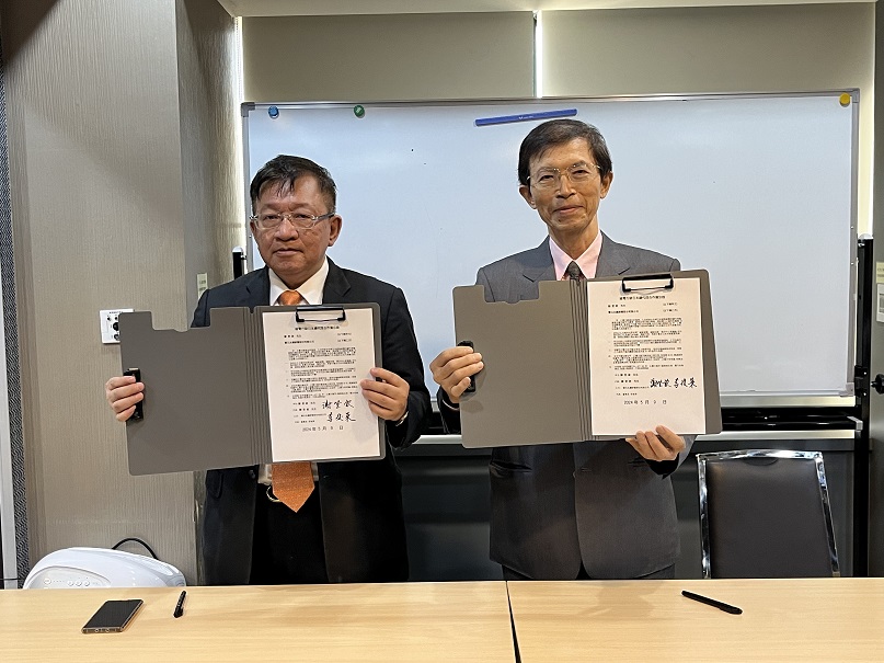 ▲董事長李後榮(左)綠電授權日本,與代理商謝登欽(右)舉行簽約儀式