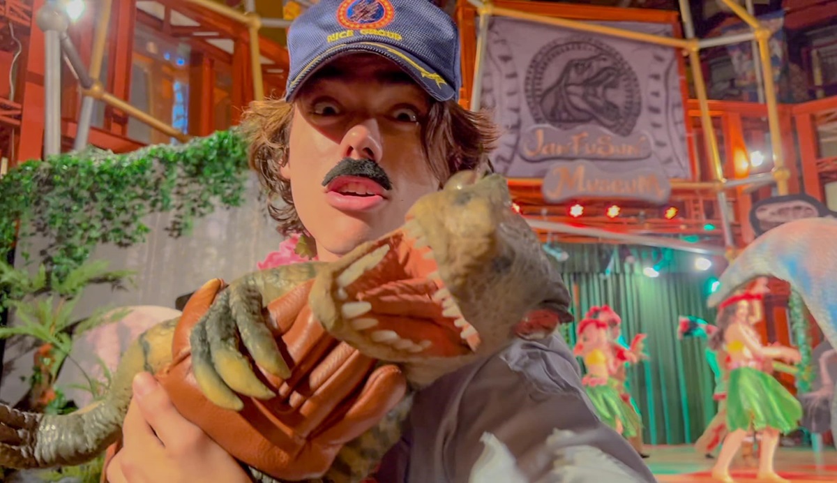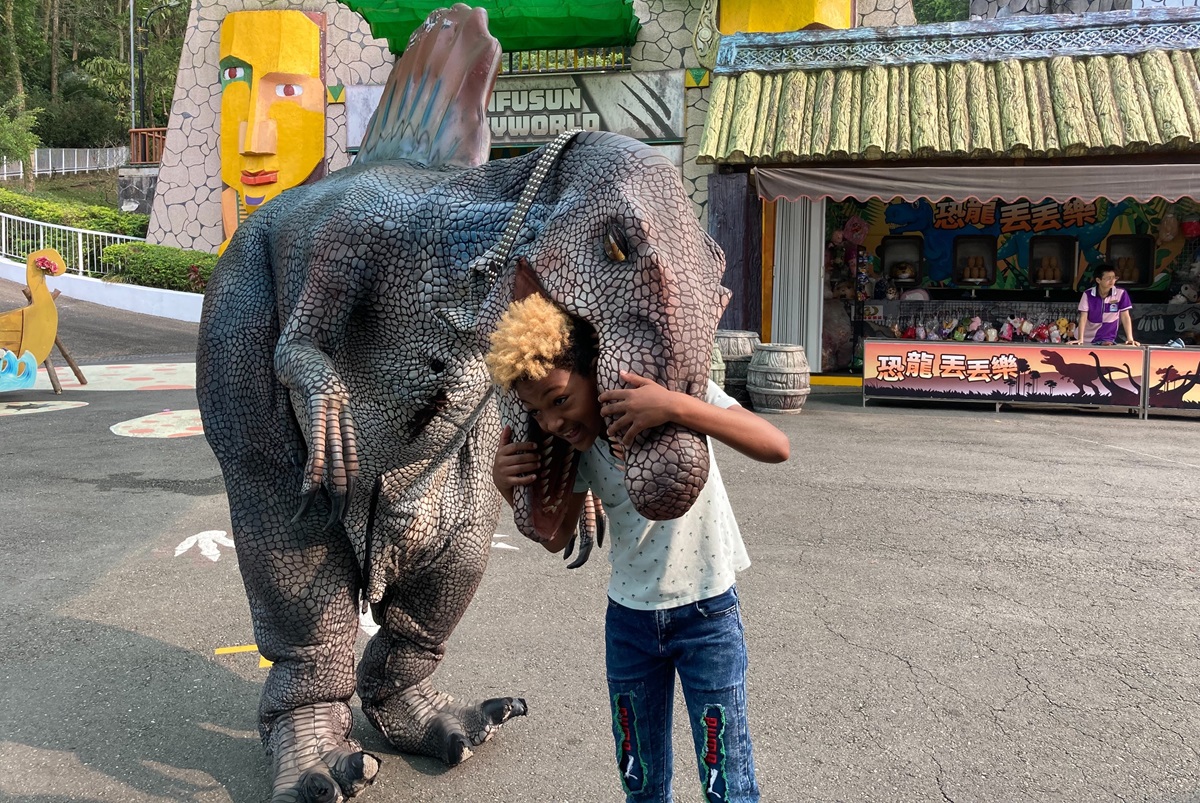 在飛越恐龍谷前,有猛獸般的脊背龍,近距離與遊客俏皮相見歡。