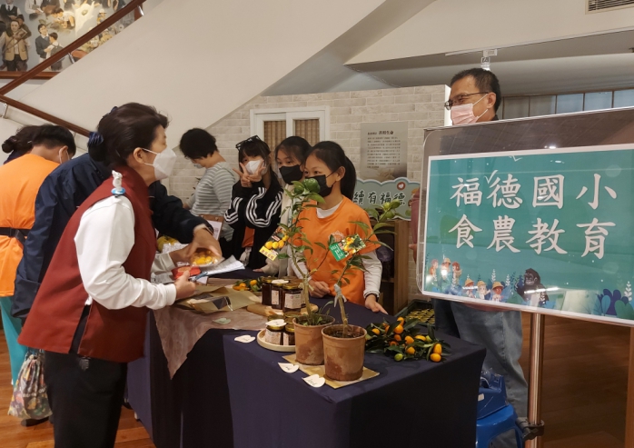 代表捐贈的福德國小高年級學生陳翊璇、蔣汶諭說,食農體驗課程很有趣,特別是用流利語言,吸引社區居民和來賓對展售的學校商品感到興趣,也讓同學們發揮信心和勇氣,為助學盡一份力量。