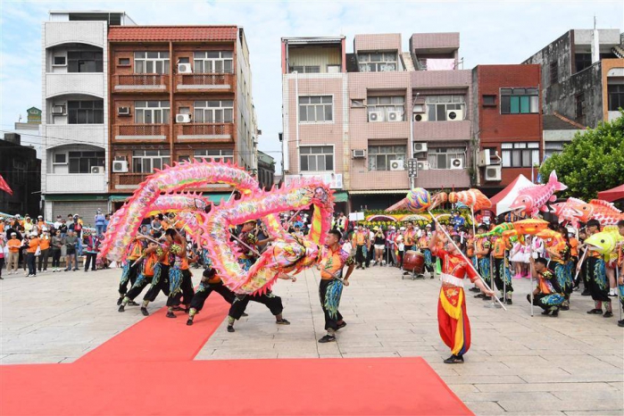 王縣長指出,這次龍王祭活動非常精彩,開場有王功兩廣國術龍獅戰鼓團帶來舞龍演出,還有榮獲全國舞蹈比賽特優的鹿港國小舞蹈表演,以及馬興社區的戰鼓表演外,恭請龍王尊神起駕後,有在地傳統藝陣、學校社區與10艘龍舟陪同踩街。
