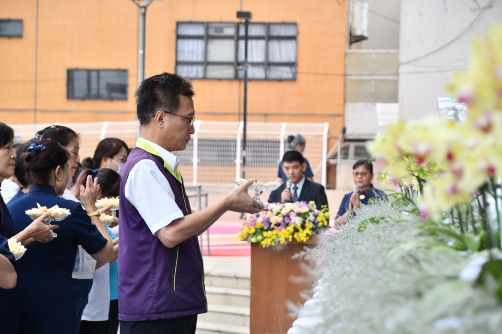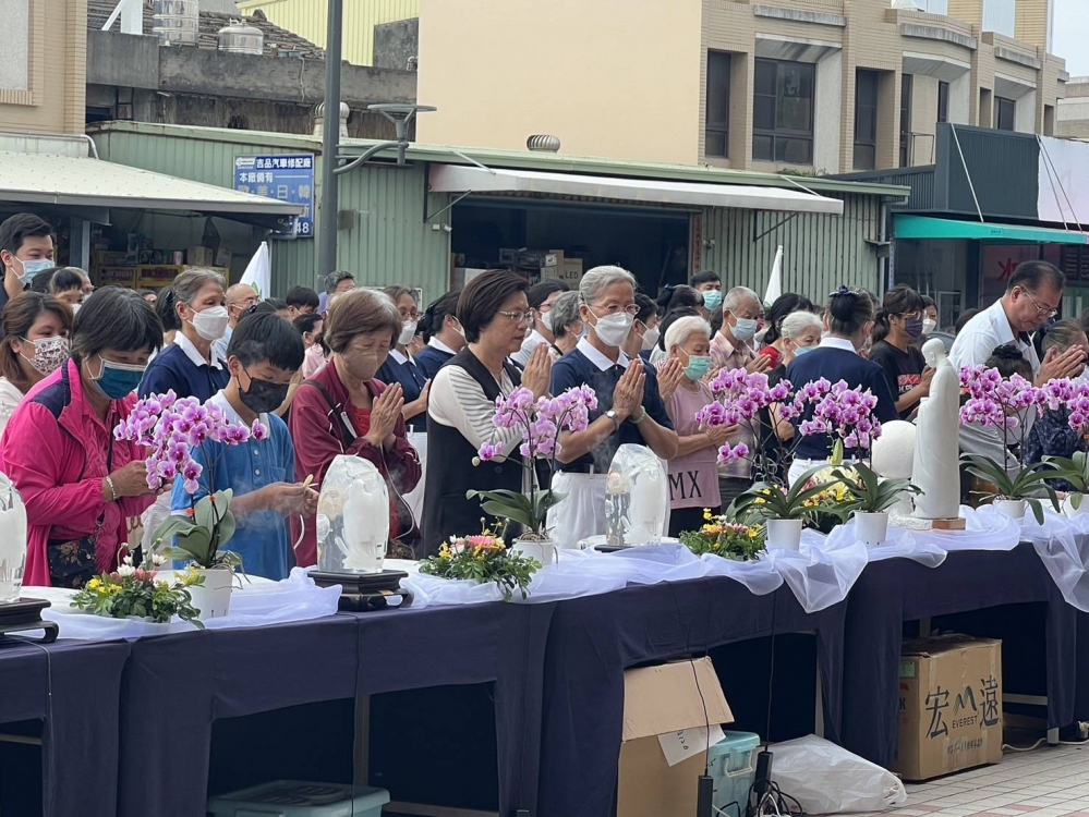 員林地區志工於員林公園舉辦浴佛大典、社區鄰里民眾,踴躍響應這場洗滌身心靈的饗宴,同沐佛恩,齊心為台灣世界祈福。