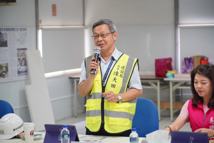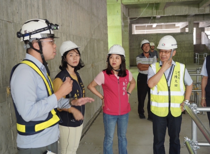 陳大田進一步說明,此工程目前施作3F柱樑鋼筋綁紮及模板組立、台電設備室,在建設局與施工團隊努力下,截至4月份工程進度微幅超前,以明年中旬完工為目標,並勉勵施工團隊除注重工程施工品質、效率外,還要顧及勞工職業安全衛生、工區周邊環境維護。