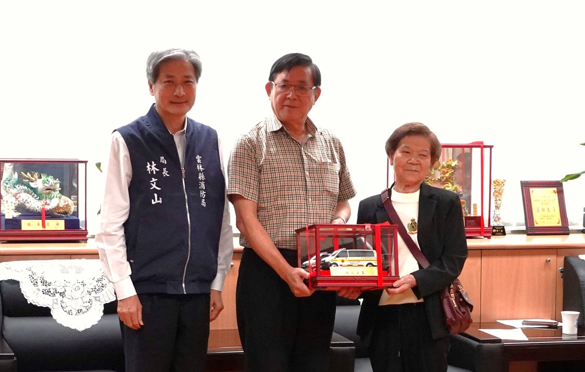 陳桂娥女士捐贈雲林縣消防局救護車1部,由雲林縣政府總顧問張清良代表受贈,並回贈感謝狀及紀念品。