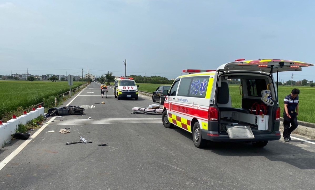 水林鄉王厝寮鄉間一偏遠路段,13日發生一起悲劇性車禍,造成夫婦王某與一輛轎車相撞,導致王某婦人當場死亡,丈夫送醫不治身亡。(圖/記者蘇峰毅翻攝)