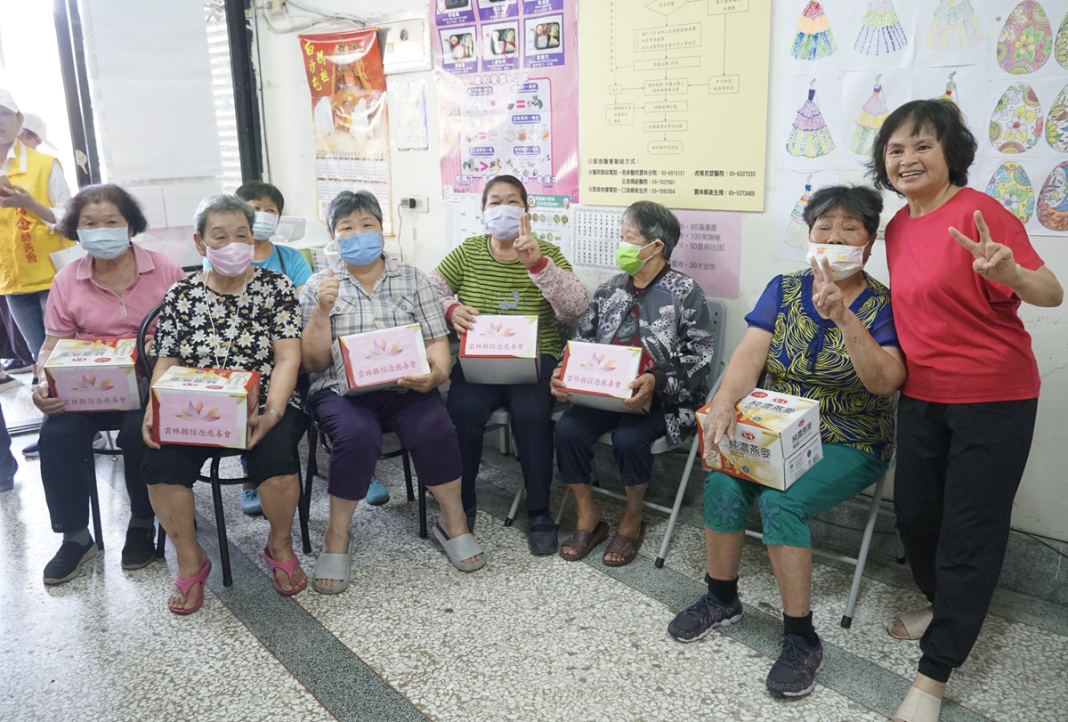 雲林縣信念慈善會在口湖鄉六個場域舉辦「敬老尊賢、關懷偏鄉獨居老人活動」,贈送每人愛之味純濃燕麥一箱。
