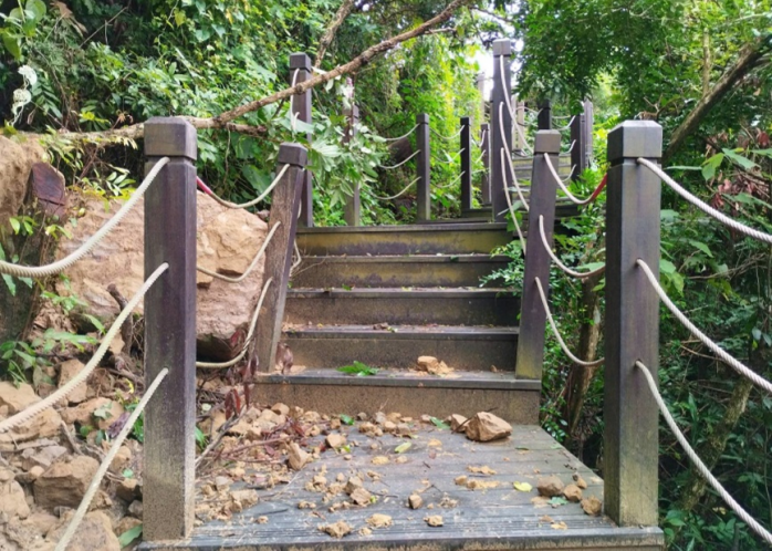 此次天然災害造成損壞處位於山區,部分機具不易抵達,且工區可施作空間狹窄,施工環境實屬不易,市府已研議防止邊坡再次滑落的最佳施工方式,全力提供民眾安全舒適的風景區遊憩設施。