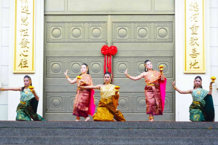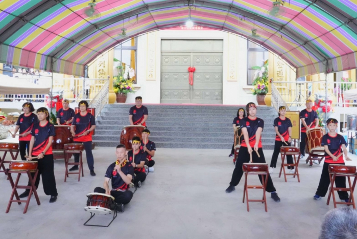安座大典由氣勢磅礡的太鼓表演及優雅華麗的柬埔寨舞蹈為典禮揭開序幕,副市長黃國榮、一貫道寶光建德前人黃張源及一貫道總會副理事長謝遠智及天寬聖宮主委謝優吉帶領在場貴賓開啟天寬聖宮新殿門扉。