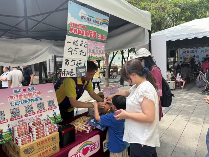 活動現場,一聲「開賣啦!」民眾、志工媽媽們就等不及自掏腰包搶著認購,工作人員忙著銷售同時,也不忘拿起自製QR-Code手板,鼓勵民眾到各花蓮產品專區網站瀏覽更多產品或分享給親朋好友。