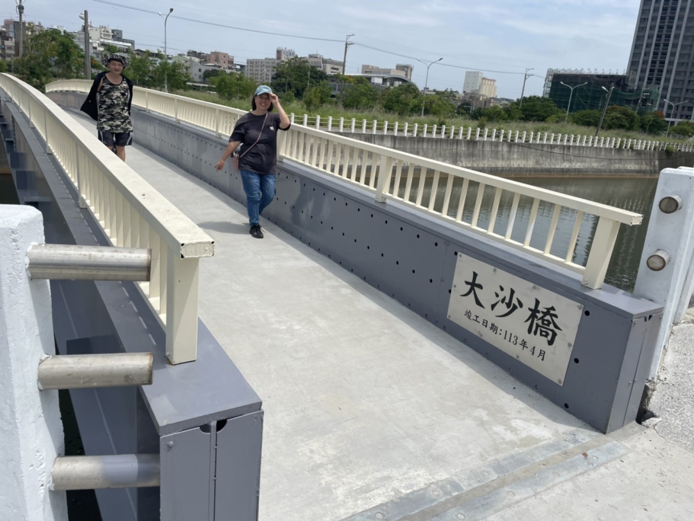 建設局說明,此工程將大沙橋原結構型式二跨混凝土T型梁橋,改以簡支鋼板I型梁橋辦理改建,因採不落墩柱設計,降低對河川通水斷面的影響;「梧棲區大沙橋災後復建工程」為三條圳一街跨越梧棲排水連接至台灣大道七段1109巷,橋梁採鋼構材質,橋長約為32.7公尺、寬2公尺,工程總經費約1492萬元,完工後可供機車、自行車及人行使用,為地方居民帶來更便利、更舒適的通行環境。