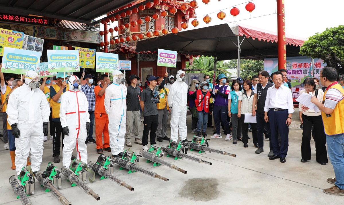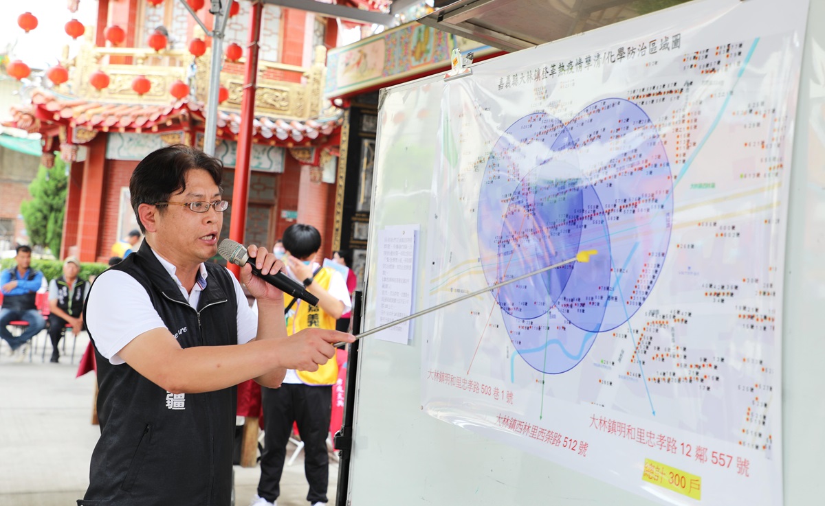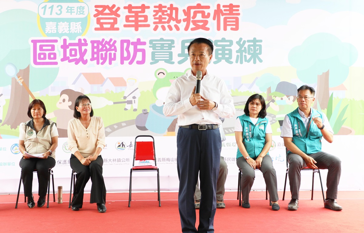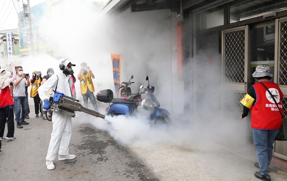 嘉義縣於21日在大林鎮朝傳宮舉行「嘉義縣登革熱疫情區域聯防實兵演練」活動。
