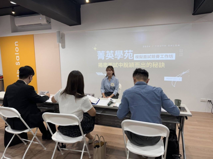 今年首次舉辦「揭密面試中脫穎而出的祕訣」模擬面試競賽,由產業專家組成面試官團隊,提供青年將所學轉為實戰的機會,也讓青年相互觀摩學習。就讀暨南大學的陳悅心面試表現從容淡定,她表示過去長時間因家人工作在海外求學,對國內就業市場比較陌生,未來想往外商公司行銷企劃發展,參加這次的活動,讓她對就業更有準備,而且認識各校不同領域的菁英。