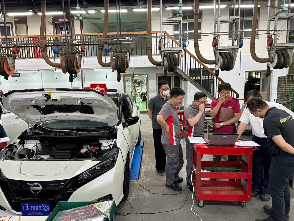 裕隆日產汽車代表表示,因應未來電動車檢修人才需求增加,急需提升各經銷公司現職技師的專業技能,該公司委託中彰投分署訓練師規劃相關培訓課程,運用先前捐贈的Nissan Leaf電動車設備,開辦「電動化車輛技術訓練班」,共有14位負責教育訓練的技師參與。