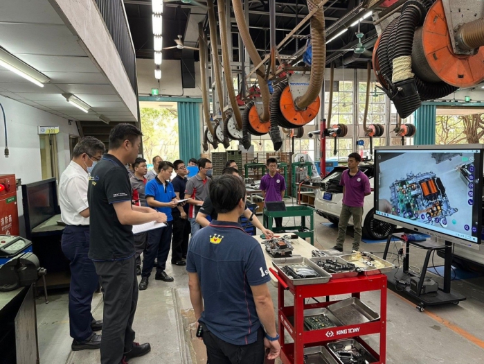 中彰投分署表示,不少國家已將運具電動化列為淨零碳排政策之一,市場對於電動車專業檢修技術人才也需求大增,各大車廠及傳統汽修廠也面臨轉型挑戰,因此中彰投分署積極佈局打造電動車職業訓練場域,配置4台油電混合車、3台電動車及充電樁等訓練設備,由訓練師規劃以實務為導向的訓練課程,協助待業民眾及在職勞工提升電動車檢修專業技能。
