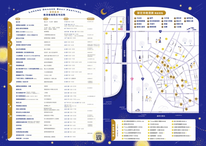 另有「鹿港溪河岸綠地音樂會」、「鹿港人文小旅行」、「魯班公宴」、「美食童玩」、「趣味民俗」和「散策市集」等,歡迎大家來鹿港感受端午佳節。
