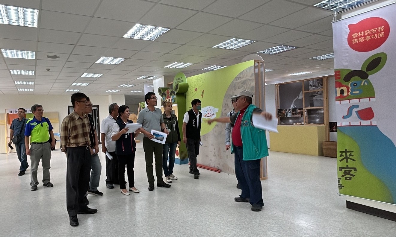 立委劉建國等人在客委會科長吳棟隆陪同下,共同到現場瞭解整個崙背立圖書館內部設備需求。(圖/記者蘇峰毅攝)