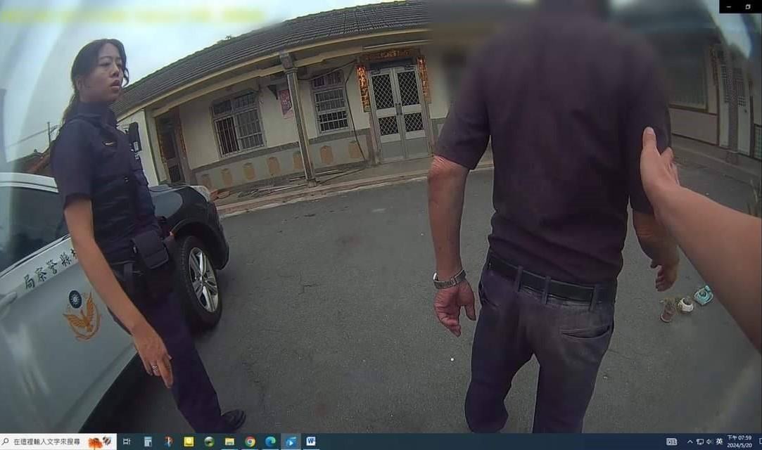 警方抵達溪底村時發現一位頭戴安全帽的老翁站在路旁揮手求助。
