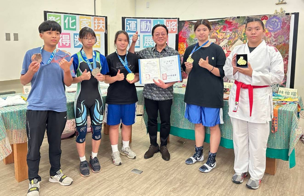 五名受表揚者是:1、全中運舉重類高中女生組55公斤級第三名(銅牌)的李姿璇。2、全中運舉重類國中女生組45公斤級第二名(銀牌)陳佳蓁。3、全中運拳擊類國中女生組第六量級第一名(金牌)何姍頤。4、全大運公開女生組拳擊第八量級第一名(金牌)林倩羽。5、全大運公開女生組公開女生組空手道第五量級第一名(金牌)林怡瑄。其中何姍頤為今年總統教育獎國中組得獎者.林倩羽為2018年總統教育獎國中組得獎者。