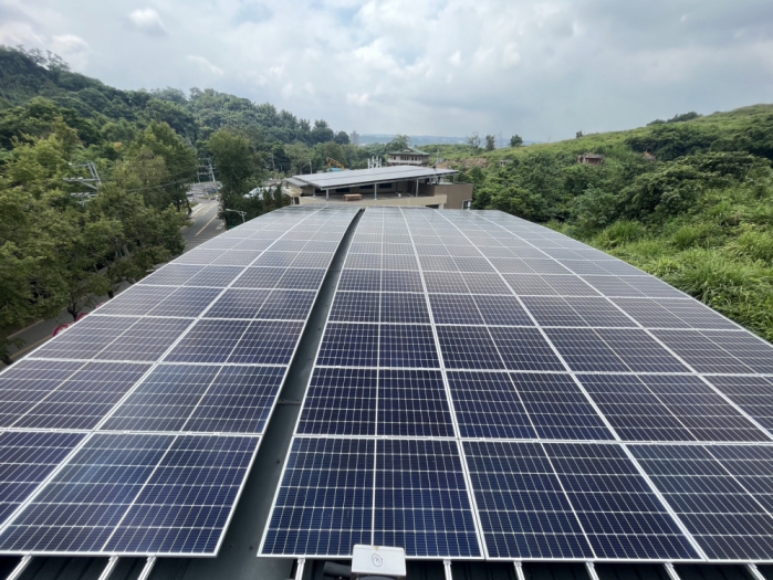 吳世瑋提到,為落實市長盧秀燕打造台中成為綠能宜居、永續淨零的幸福城市,生管處持續提升東勢殯儀館各項設施,除近期完成小靈堂改設LED電子牌樓外,去年也投入總經費300萬元,於小靈堂前廣場增設太陽能固定式採光罩,有別於傳統拱門型透光設計,單斜面設計輕鋼板,可承載太陽光電板重量,除提供治喪民眾遮風避雨的空間,更有助節能滅碳。