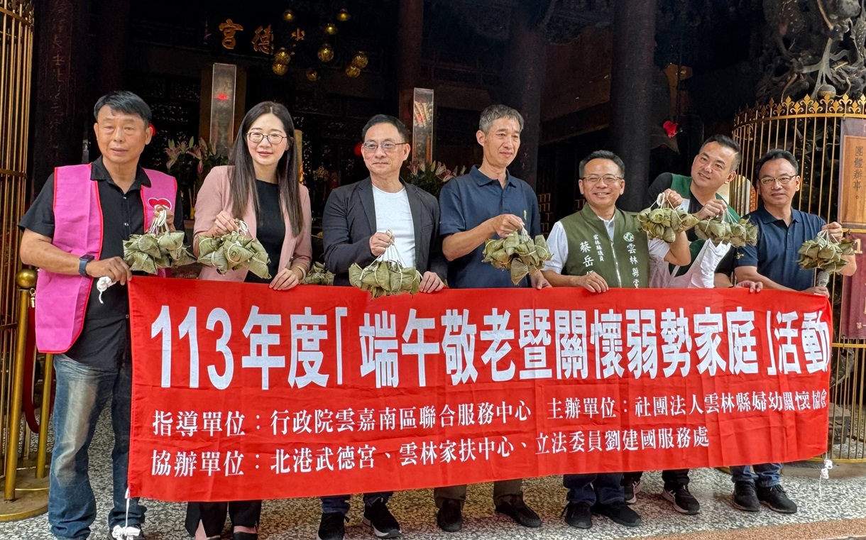 【記者蘇榮泉/雲林報導】端午節即將來臨,今年的「暖心FUN粽,發放保平安ㄟ平安粽」活動由婦幼協會和行政院雲嘉南區聯合服務中心共同主辦,北港武德宮、雲林家扶中心、立法委員劉建國服務處、雲林縣議員蔡岳儒服務處協辦。活動已進入第十五年,於3日在北港武德宮分送四千五百顆「平安粽」給夜光天使、雲林家扶中心北港區受扶助戶及北港區年長者和弱勢家庭,讓大家提前感受端午節的溫馨氛圍。
