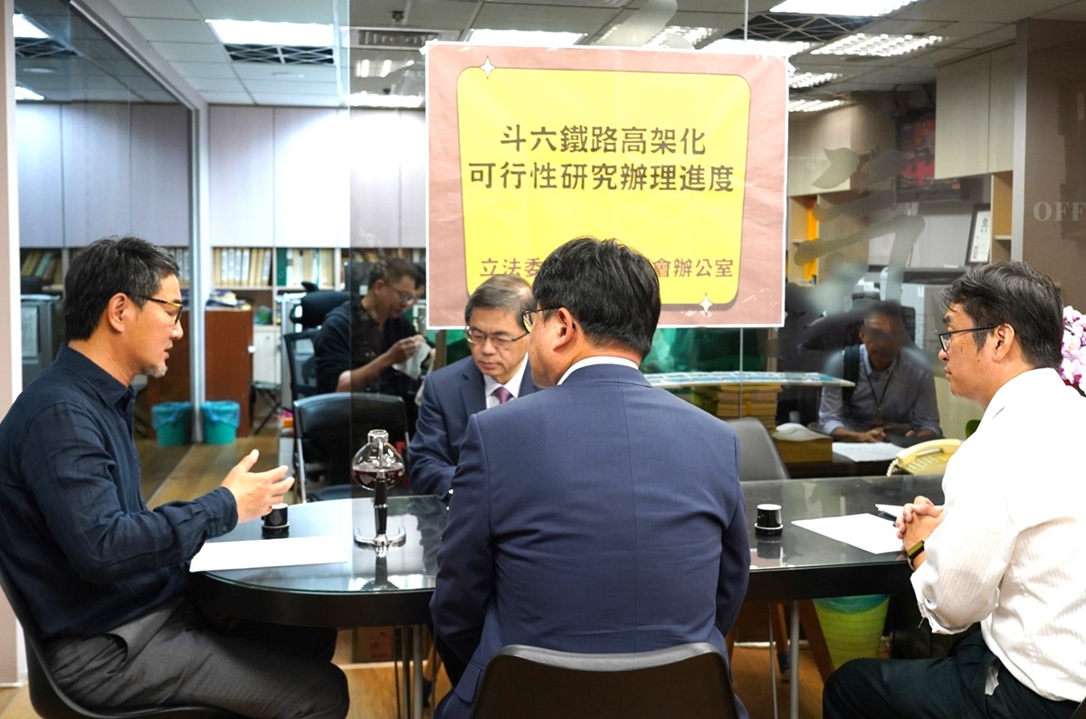 立委劉建國邀請交通部長李孟諺及鐵道局長楊正君赴立法院討論斗六市區鐵路高架化可行性報告的進度。(圖/立委劉建國提供)