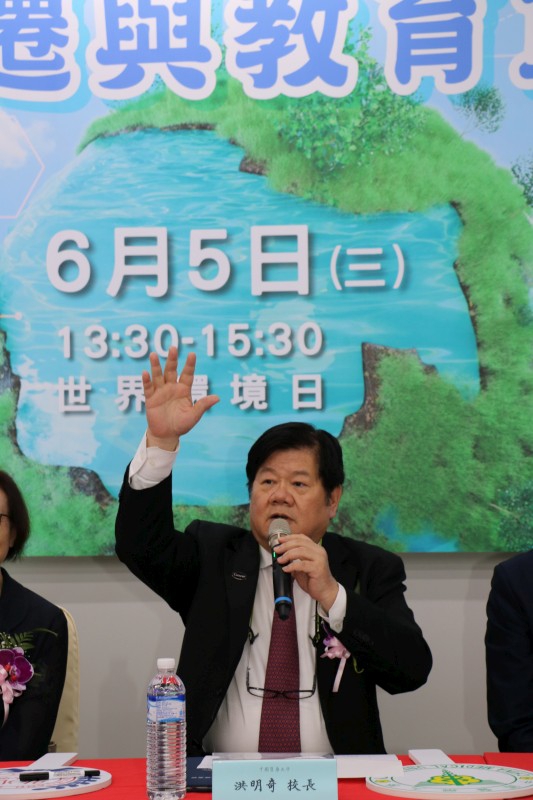中國醫藥大學校長洪明奇院士致詞時,歡迎中部地區9所大學的校長、副校長代表蒞校參與「世界環境日」(World Environment Day)共同舉辦「2024中區大學氣候變遷與教育宣言」活動,同時簽署了具有里程碑意義的宣言,提醒全民關注地球氣候變遷和人類活動對環境的危害,也實踐高等教育對推動永續發展與淨零碳排放的社會責任。