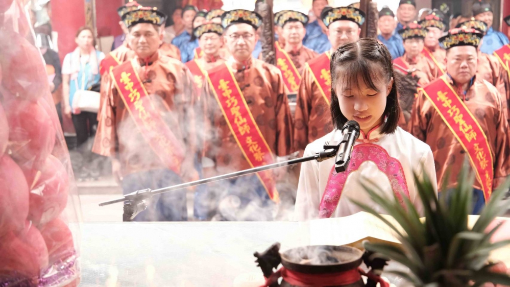 市府客委會說明,古禮祭祀大典由玉山高中同學們擔任禮生,東勢國小魏佑宸同學及僑泰高中陳柏諭同學,以純熟的客語朗誦疏文、擔任司儀,展現台中市府致力保存客家語言及文化的心意和行動力;也邀請「大襟客客家文化藝術協會」及「台中市客家音樂曲藝研究學會」所組成的客家八音樂隊以古典樂曲為仙師祝壽,八音演奏為祭典增添熱鬧隆重氛圍,藉此發揚客家傳統藝術之美。