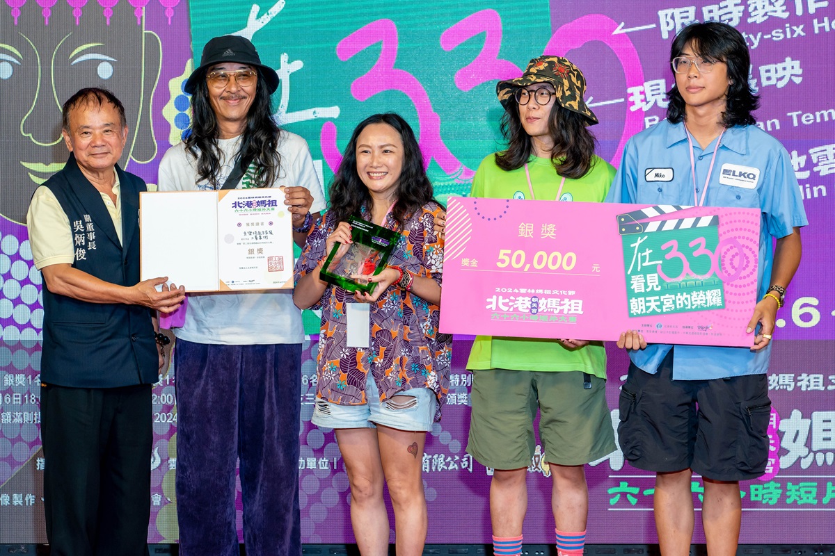 第二屆北港媽祖66小時短片大賽「銀獎」由秀樂琦庭全家餐《二童當街》奪得,由副董事長吳炳俊頒發5萬元獎金。