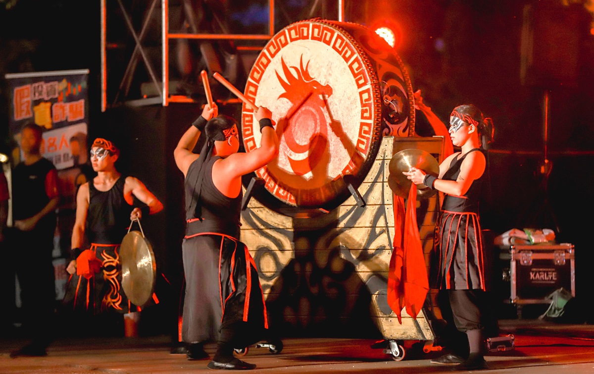 九天民俗技藝團帶來的「僮樂會」民俗技藝表演,吸引了數百位民眾到場觀賞。