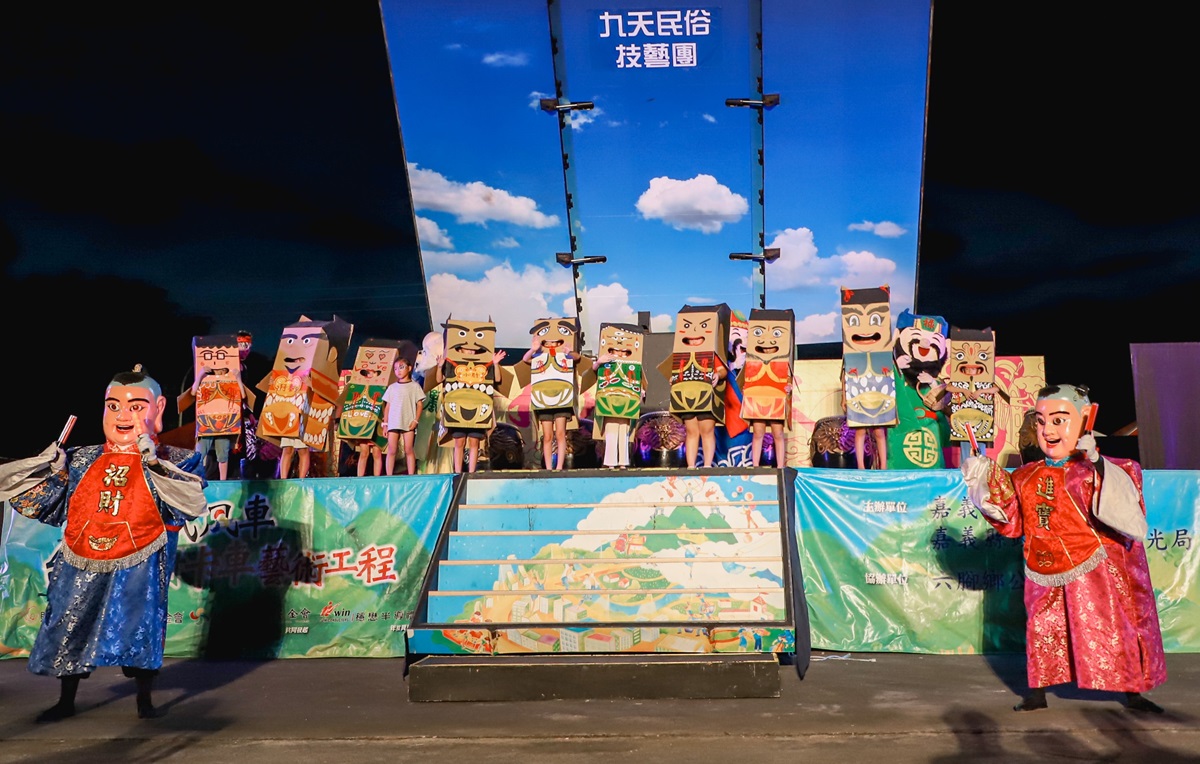 【記者蘇榮泉嘉義報導】嘉義縣六腳鄉9日晚間迎來「紙風車台灣卡車鄉村藝術工程」,九天民俗技藝團帶來的「僮樂會」民俗技藝表演,吸引了數百位民眾到場觀賞。嘉義縣長翁章梁與六腳鄉長黃鉦凱也親臨現場,共襄盛舉。