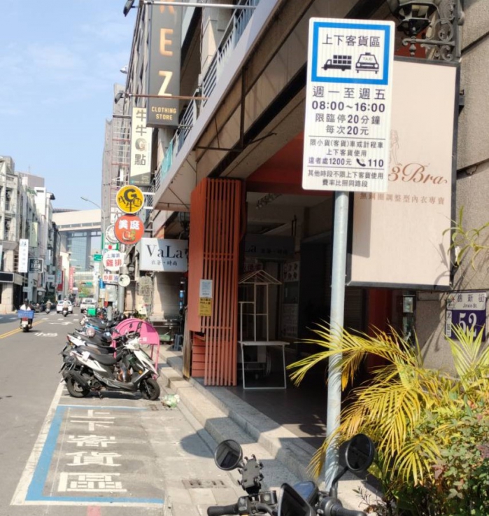 民眾如何分辨上下客貨區共享車格?葉昭甫表示,上下客貨區共享車格是供小貨(客貨)車或計程車上下客貨使用,提供短暫臨停空間,客貨使用限臨停20分鐘,每次20元,使用時間為週一至週五上午8時至下午4時,車格內加繪藍色框,並標註「上下客貨區」字樣,車格旁設有告示牌,標記車格使用時間及限制,讓民眾能清楚識別可停放時間及使用方式。