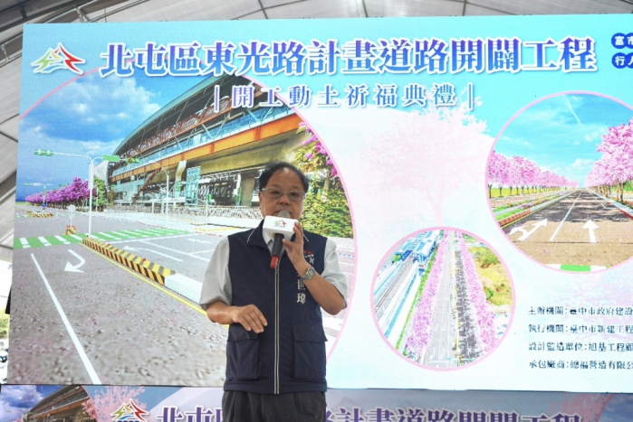 建設局長陳大田表示,東光路計畫道路開闢全長1.5公里,所需總經費約59億9,076萬元,市府分年分段持續開闢,這次以工程總經費23億1,087萬元先進行松竹路一段至南興三路及東山路一段至東光路892巷,感謝北屯區在地議員的支持促成,完善車站周邊通行需求。