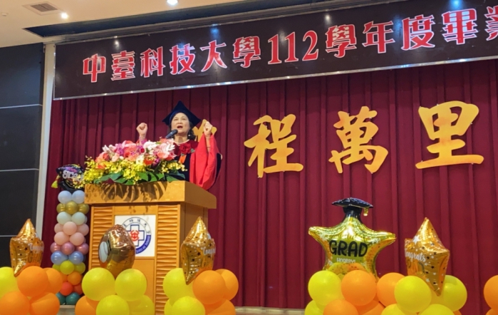 校長陳錦杏在典禮上以「深度、廣度、溫度的中臺學習目標」勉勵畢業生:「教育的真正價值在於實現學生的全面發展,中臺科大自創校以來,致力於培育具備技術專業與人文素養的專業人才,並且強調翻轉思維『永續創新』及社區鏈結『社會服務』重要性。今天,各位準畢業生即將邁向新的人生階段,希望大家能夠成為具有深度、廣度、溫度的中臺人,繼續精進自己的專業深度,同時在AI時代也要具備跨域能力的廣度,並始終保持對知識的渴望與關懷別人的溫度。」
