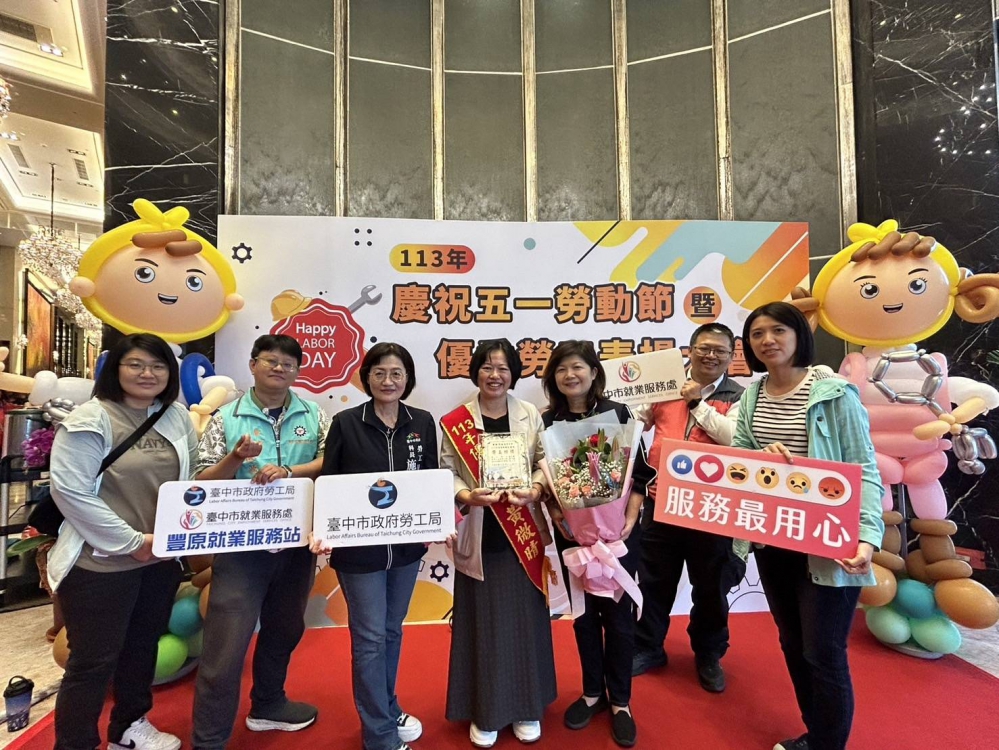 此外,豐原就業服務站業務督導員黃微晴也因工作態度認真、品德優良,今年獲得台中市直轄市總工會模範勞工表揚。黃員從事就業服務多年,始終秉持服務熱忱,除協助待業者請領失業給付,也助其後續順利進入職場,對於服務過程中未盡之處,也主動提出簡政便民的創新政策,節省民眾往返各機關間舟車勞頓的寶貴時間,讓待業者能更專注在求職或職訓課程上。