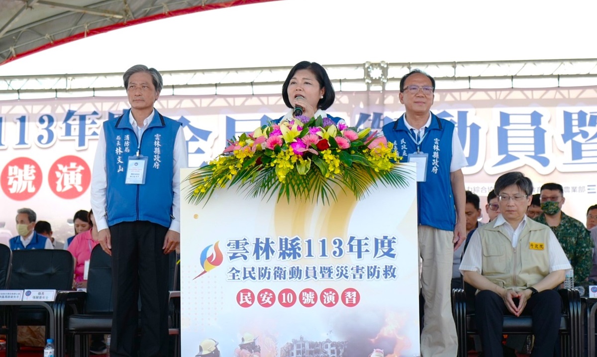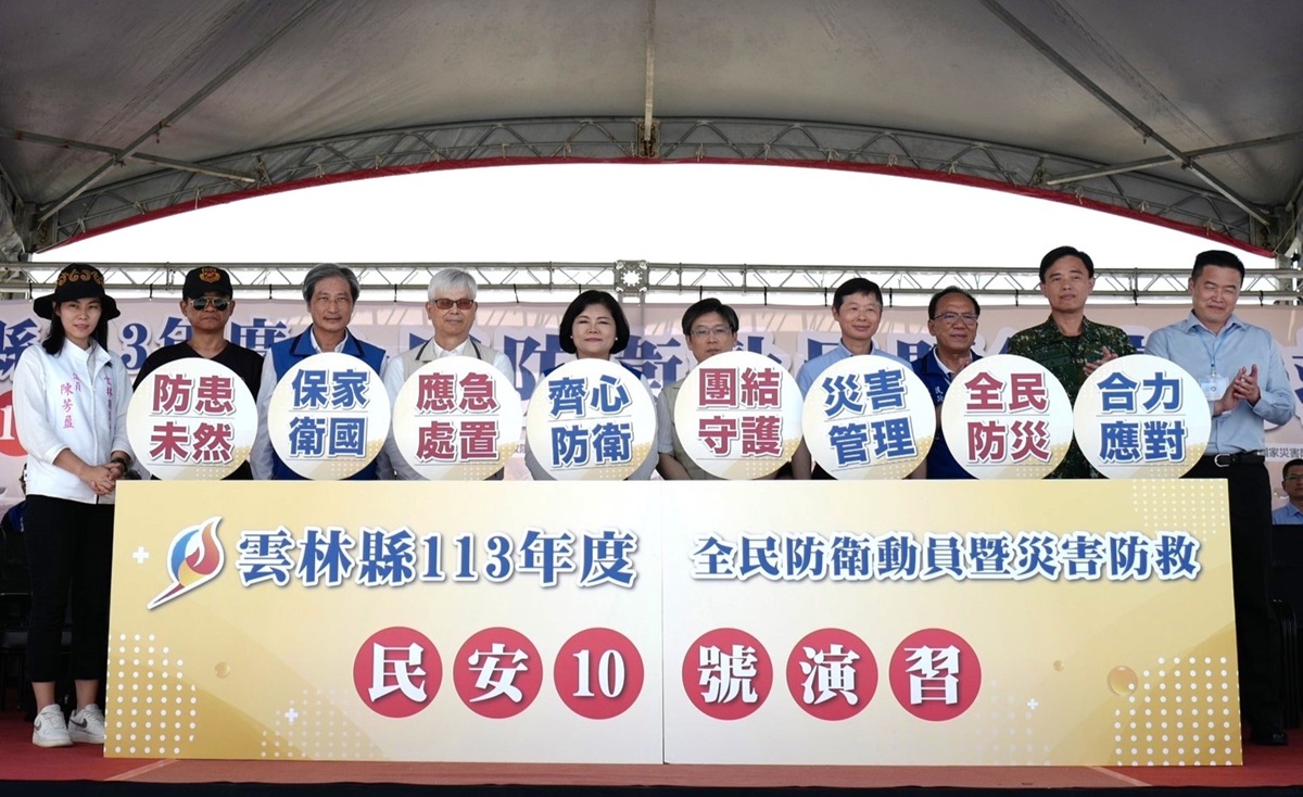 雲林縣政府113年全民防衛動員暨災害防救(民安10號)演習實兵演練啟動。