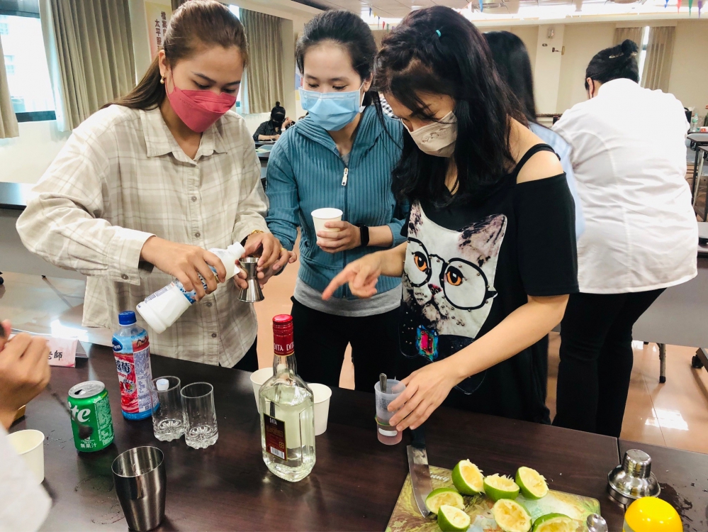 此次課程運用在地農特產荔枝、龍眼等食材,教導新住民調製特色雞尾酒、氣泡飲及烘焙糕點等,且剩餘的果皮材料也不浪費,留做DIY果皮清潔劑的天然材料,引領學員反思人類、食物與環境共生關係,讓新住民感受在地文化的美好和多元性,並藉此培養新住民職能發展的潛能。